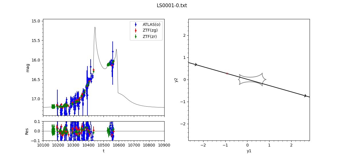 u0=0.05780±0.81 tE=119.001±29 t0=10577.783±28 ρ*=0.99277±0.27 πE,N=0.18599±0.11 πE,E=-0.144356±0.052